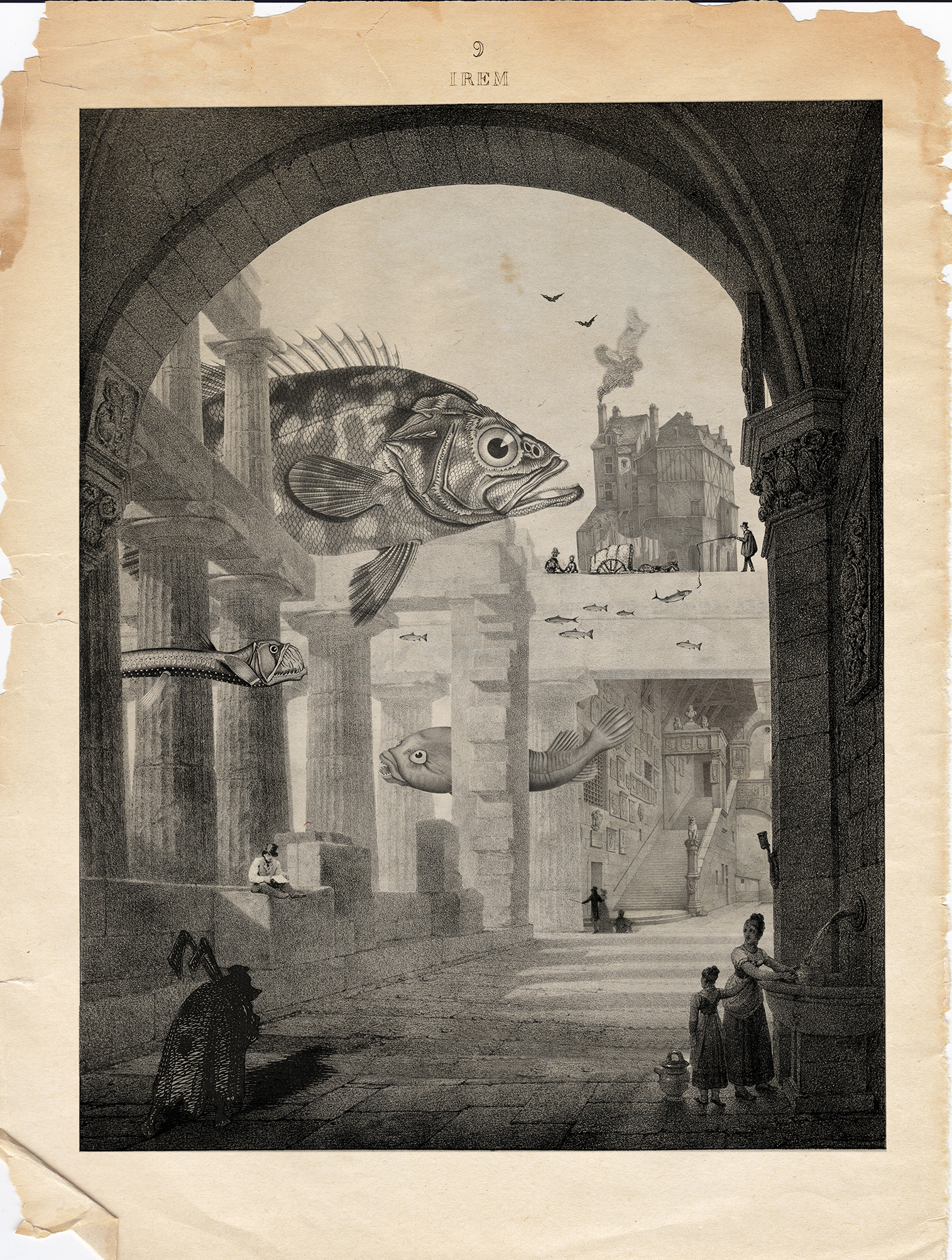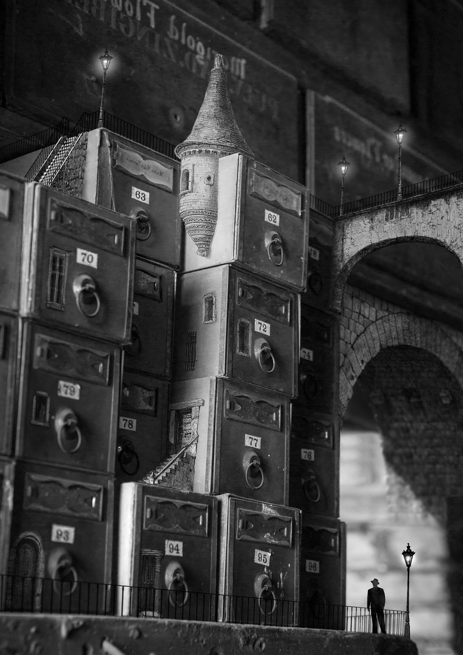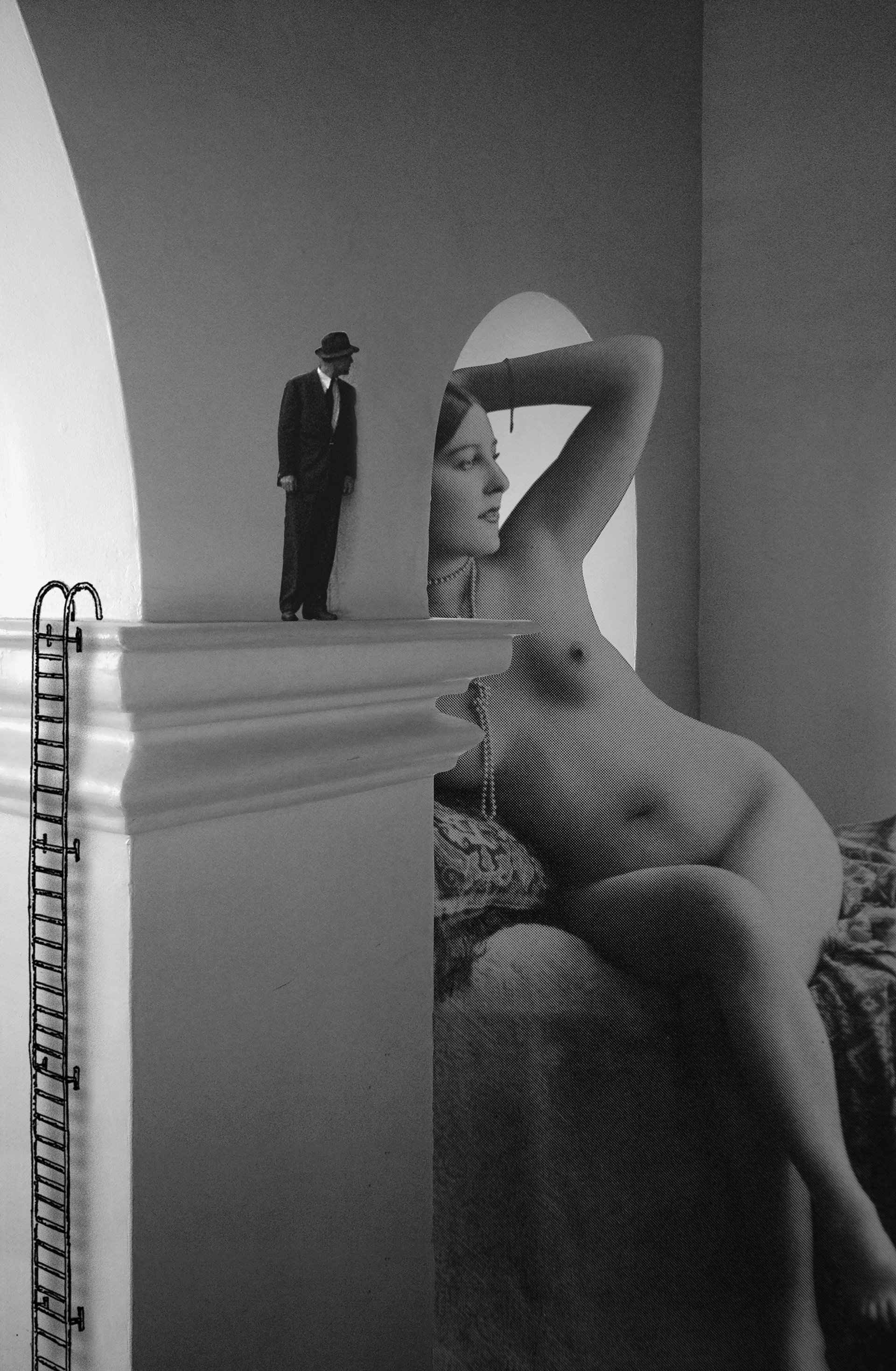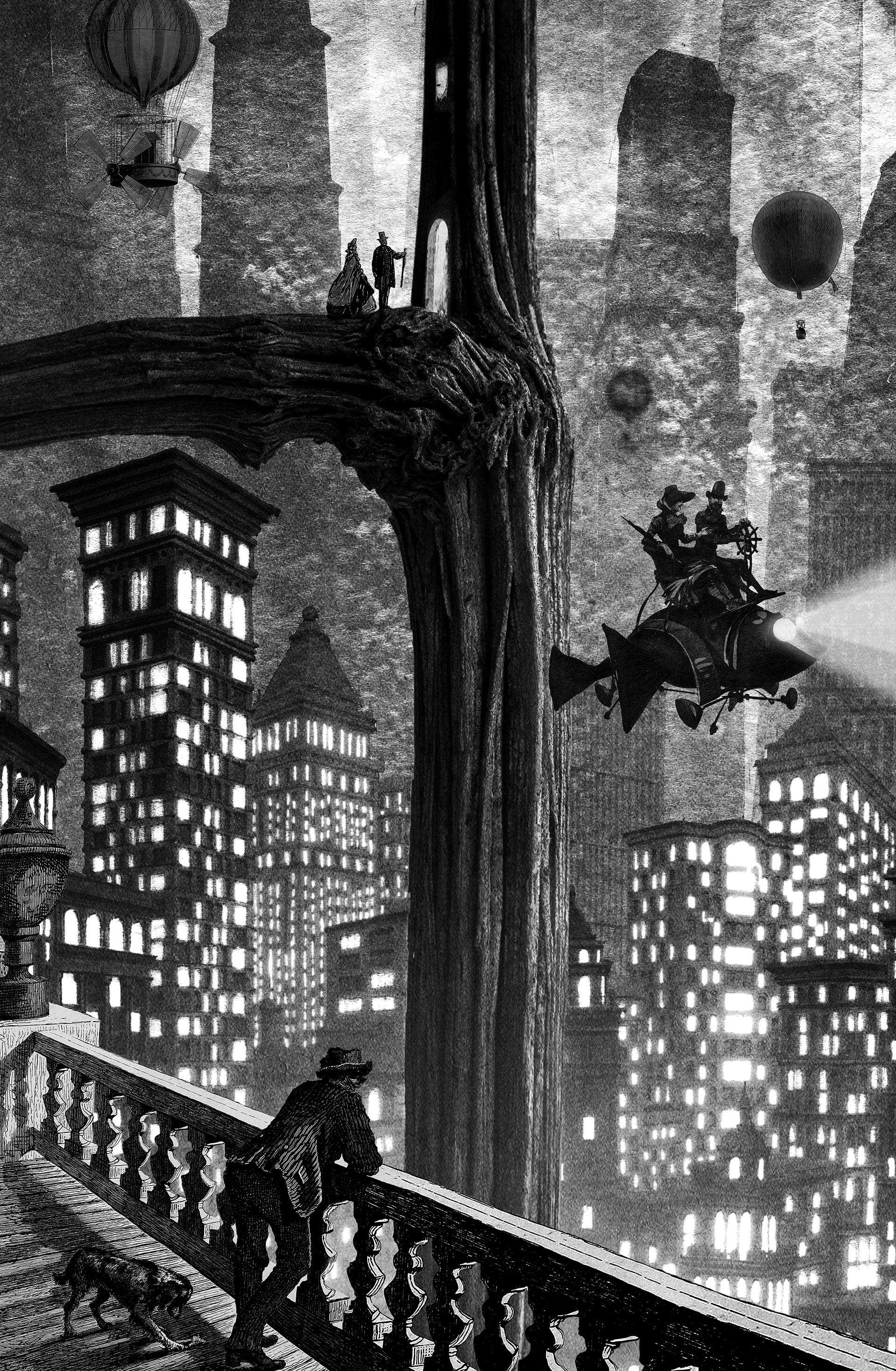 Made in Photoshop from scanned vintage photos and magazines, some of my photos, engravings and illustrations, scanned textures, and various drawings from my sketchbooks.